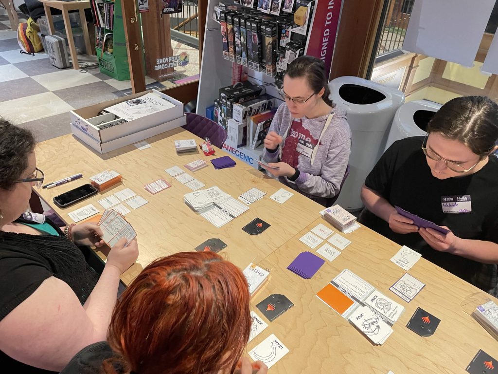 Here’s the short version: We’re still plugging away at the game. We’ve run two larger scale playtests that are closer in vision to what we want the final game to look like. We’ve added dozens of cards, a bunch of activities and puzzles, and we’re working hard to add more.